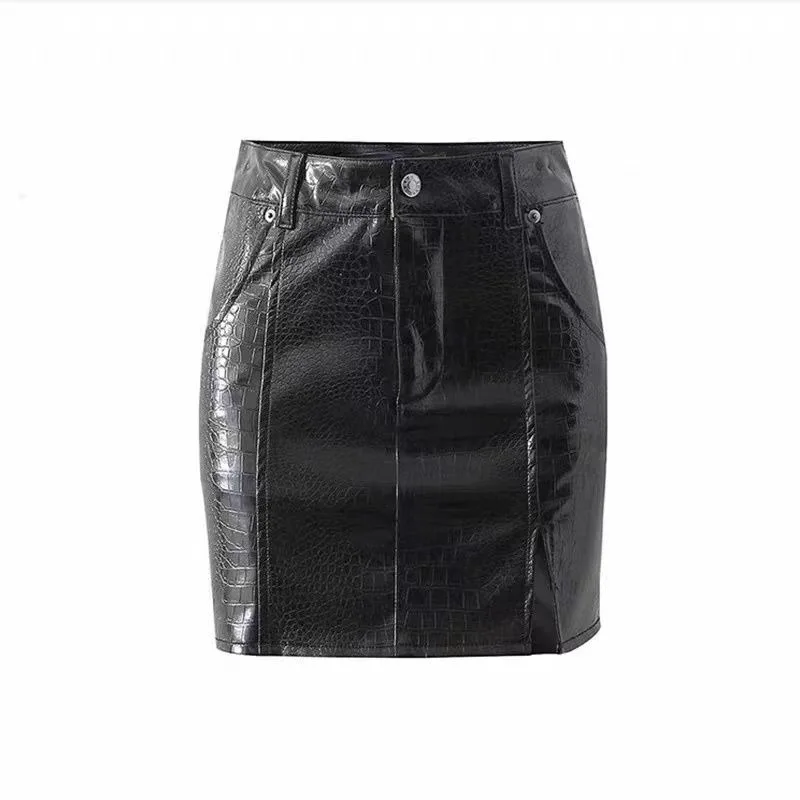 Crafted from high-quality leather, this skirt not only features a stunning crocodile texture but also offers a sexy slit for added allure. The high-waisted design accentuates your curves, making it a versatile piece for any occasion.