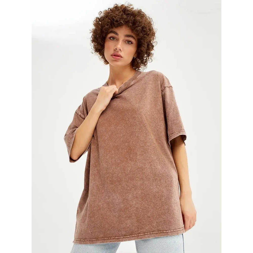 Rediscover effortless style with our Vintage Cotton Washed Women’s T-Shirt, the perfect addition to any casual outfit. This short sleeve tee is designed for comfort and versatility, making it ideal for daily wear, whether you're running errands or enjoy a relaxing day out. Crafted from premium, soft cotton with a washed finish, it offers a loose, flattering fit that complements every body type. The classic solid colors make it easy to mix and match with your favorite jeans or layered under a jacket. Experience the perfect blend of comfort and fashion, with a top that not only looks great but also feels amazing on the skin.