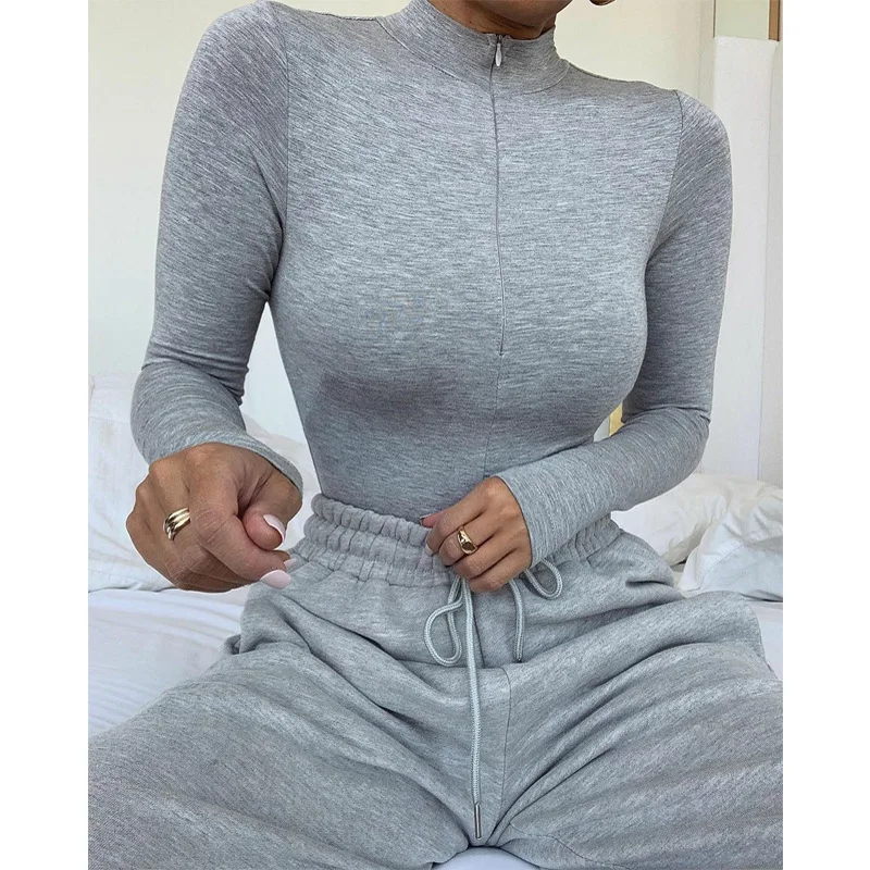 **Elevate Your Wardrobe with Our Chic Bodysuit!** Introducing the Stylish Solid Zipper Bodysuit, perfect for adding a touch of elegance to your autumn or winter wardrobe. This sexy mock neck design features long sleeves that flatter your silhouette while providing warmth and style. It’s an essential piece for women seeking comfort without compromising on fashion. Whether you pair it with jeans for a casual outing or a skirt for a night out, this bodysuit provides a versatile look that transitions seamlessly from day to night. Made from high-quality fabric, it ensures a perfect fit. Don't miss out on this must-have winter outfit – upgrade your collection today for that exclusive, stylish flair!